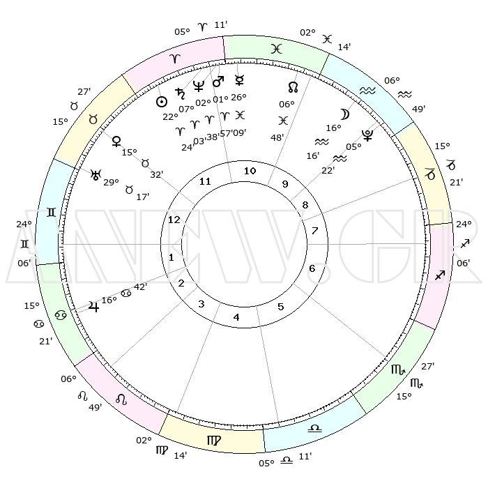 | | ΘΕΣΕΙΣ ΠΛΑΝΗΤΩΝ ΑΣΤΡΟΛΟΓΙΚΟΥ ΧΑΡΤΗ ΤΗΣ ΣΤΙΓΜΗΣ ΑΥΤΗΣ | | | | Πλανήτης | Ζώδιο | Μοίρες | Δεκαήμ. | Σε οίκο | Απόκλιση | | Ακμές των οίκων | | Ηλιος | Κριός | 22°21' | Τρίτο | 12 | 08 N 42 | | 1ος | 01°45' | Δίδυμοι | | Σελήνη | Υδροχόος | 15°31' | Δεύτερο | 10 | 18 S 05 | | 2ος | 26°13' | Δίδυμοι | | Ερμής | Ιχθείς | 26°04' | Τρίτο | 11 | 03 S 50 | | 3ος | 17°34' | Καρκίνος | | Αφροδίτη | Ταύρος | 15°28' | Δεύτερο | 12 | 16 N 31 | | 4ος | 10°28' | Λέων | | Αρης | Κριός | 01°54' | Πρώτο | 11 | 00 S 10 | | 5ος | 09°14' | Παρθένος | | Δίας | Καρκίνος | 16°41' | Δεύτερο | 2 | 22 N 46 | | 6ος | 17°57' | Ζυγός | | Κρόνος | Κριός | 07°03' | Πρώτο | 11 | 00 N 50 | | 7ος | 01°45' | Τοξότης | | Ουρανός | Ταύρος | 29°17' | Τρίτο | 12 | 19 N 50 | | 8ος | 26°13' | Τοξότης | | Ποσειδώνας | Κριός | 02°38' | Πρώτο | 11 | 00 S 10 | | 9ος | 17°34' | Αιγόκερως | | Πλούτωνας | Υδροχόος | 05°22' | Πρώτο | 9 | 22 S 47 | | 10ος | 10°28' | Υδροχόος | | Β. Δεσμός | Ιχθείς | 06°48' | Πρώτο | 10 | 09 S 01 | | 11ος | 09°14' | Ιχθείς | | Ωροσκόπος | Δίδυμοι | 01°45' | Πρώτο | | | 12ος | 17°57' | Κριός | | Μεσουράνημα | Υδροχόος | 10°28' | Δεύτερο | | | |