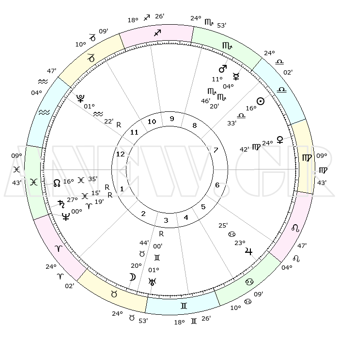 | ΘΕΣΕΙΣ ΠΛΑΝΗΤΩΝ ΑΣΤΡΟΛΟΓΙΚΟΥ ΧΑΡΤΗ ΤΗΣ ΣΤΙΓΜΗΣ ΑΥΤΗΣ | | Πλανήτης | Ζώδιο | Μοίρες | Δεκαήμ. | Σε οίκο | Απόκλιση | | Ακμές των οίκων | Ηλιος | Ζυγός | 16°23' | Δεύτερο | 9 | 06 S 26 | | 1ος | 27°17' | Τοξότης | Σελήνη | Ταύρος | 18°12' | Δεύτερο | 5 | 21 N 35 | | 2ος | 03°45' | Υδροχόος | Ερμής | Σκορπιός | 04°05' | Πρώτο | 10 | 13 S 55 | | 3ος | 13°32' | Ιχθείς | Αφροδίτη | Παρθένος | 24°29' | Τρίτο | 9 | 03 N 31 | | 4ος | 17°54' | Κριός | Αρης | Σκορπιός | 11°39' | Δεύτερο | 10 | 15 S 29 | | 5ος | 14°39' | Ταύρος | Δίας | Καρκίνος | 23°24' | Τρίτο | 7 | 21 N 26 | | 6ος | 06°38' | Δίδυμοι | Κρόνος | Ιχθείς | 27°16'R | Τρίτο | 3 | 03 S 23 | | 7ος | 27°17' | Δίδυμοι | Ουρανός | Δίδυμοι | 01°01'R | Πρώτο | 5 | 20 N 09 | | 8ος | 03°45' | Λέων | Ποσειδώνας | Κριός | 00°19'R | Πρώτο | 3 | 01 S 08 | | 9ος | 13°32' | Παρθένος | Πλούτωνας | Υδροχόος | 01°22'R | Πρώτο | 1 | 23 S 32 | | 10ος | 17°54' | Ζυγός | Β. Δεσμός | Ιχθείς | 16°36' | Δεύτερο | 3 | 05 S 17 | | 11ος | 14°39' | Σκορπιός | Ωροσκόπος | Τοξότης | 27°17' | Τρίτο | | | 12ος | 06°38' | Τοξότης | Μεσουράνημα | Ζυγός | 17°54' | Δεύτερο | | | |