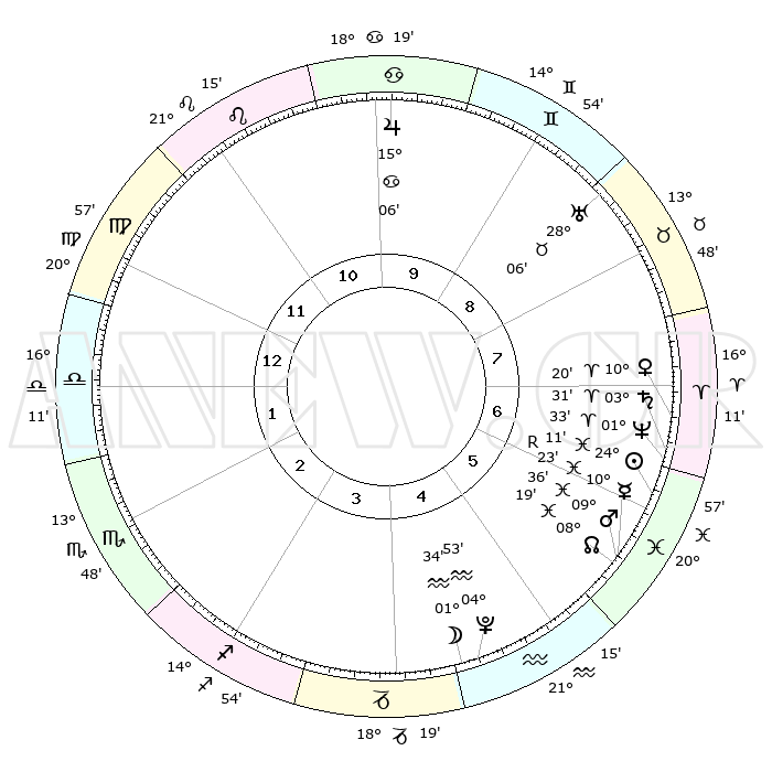 | | ΘΕΣΕΙΣ ΠΛΑΝΗΤΩΝ ΑΣΤΡΟΛΟΓΙΚΟΥ ΧΑΡΤΗ ΤΗΣ ΣΤΙΓΜΗΣ ΑΥΤΗΣ | | | | Πλανήτης | Ζώδιο | Μοίρες | Δεκαήμ. | Σε οίκο | Απόκλιση | | Ακμές των οίκων | | Ηλιος | Ιχθείς | 24°07' | Τρίτο | 6 | 02 S 20 | | 1ος | 29°49' | Παρθένος | | Σελήνη | Υδροχόος | 00°52' | Πρώτο | 4 | 23 S 08 | | 2ος | 26°24' | Ζυγός | | Ερμής | Ιχθείς | 10°25'R | Δεύτερο | 6 | 05 S 21 | | 3ος | 26°49' | Σκορπιός | | Αφροδίτη | Κριός | 10°16' | Δεύτερο | 7 | 03 N 06 | | 4ος | 29°48' | Τοξότης | | Αρης | Ιχθείς | 09°33' | Πρώτο | 6 | 09 S 00 | | 5ος | 02°47' | Υδροχόος | | Δίας | Καρκίνος | 15°06' | Δεύτερο | 10 | 22 N 56 | | 6ος | 03°13' | Ιχθείς | | Κρόνος | Κριός | 03°30' | Πρώτο | 7 | 00 S 33 | | 7ος | 29°49' | Ιχθείς | | Ουρανός | Ταύρος | 28°06' | Τρίτο | 9 | 19 N 34 | | 8ος | 26°24' | Κριός | | Ποσειδώνας | Κριός | 01°33' | Πρώτο | 7 | 00 S 35 | | 9ος | 26°50' | Ταύρος | | Πλούτωνας | Υδροχόος | 04°53' | Πρώτο | 5 | 22 S 50 | | 10ος | 29°48' | Δίδυμοι | | Β. Δεσμός | Ιχθείς | 08°19' | Πρώτο | 6 | 08 S 27 | | 11ος | 02°47' | Λέων | | Ωροσκόπος | Παρθένος | 29°49' | Τρίτο | | | 12ος | 03°13' | Παρθένος | | Μεσουράνημα | Δίδυμοι | 29°48' | Τρίτο | | | |