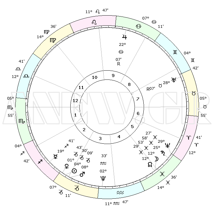 | | ΘΕΣΕΙΣ ΠΛΑΝΗΤΩΝ ΑΣΤΡΟΛΟΓΙΚΟΥ ΧΑΡΤΗ ΤΗΣ ΣΤΙΓΜΗΣ ΑΥΤΗΣ | | | | Πλανήτης | Ζώδιο | Μοίρες | Δεκαήμ. | Σε οίκο | Απόκλιση | | Ακμές των οίκων | | Ηλιος | Αιγόκερως | 04°25' | Πρώτο | 3 | 23 S 22 | | 1ος | 12°11' | Ζυγός | | Σελήνη | Ιχθείς | 11°49' | Δεύτερο | 5 | 07 S 05 | | 2ος | 09°34' | Σκορπιός | | Ερμής | Τοξότης | 19°34' | Δεύτερο | 3 | 22 S 53 | | 3ος | 10°29' | Τοξότης | | Αφροδίτη | Αιγόκερως | 01°37' | Πρώτο | 3 | 23 S 42 | | 4ος | 13°44' | Αιγόκερως | | Αρης | Αιγόκερως | 08°05' | Πρώτο | 3 | 24 S 02 | | 5ος | 16°40' | Υδροχόος | | Δίας | Καρκίνος | 22°07'R | Τρίτο | 10 | 21 N 50 | | 6ος | 16°35' | Ιχθείς | | Κρόνος | Ιχθείς | 25°58' | Τρίτο | 6 | 03 S 42 | | 7ος | 12°11' | Κριός | | Ουρανός | Ταύρος | 28°07'R | Τρίτο | 8 | 19 N 33 | | 8ος | 09°34' | Ταύρος | | Ποσειδώνας | Ιχθείς | 29°27' | Τρίτο | 6 | 01 S 27 | | 9ος | 10°29' | Δίδυμοι | | Πλούτωνας | Υδροχόος | 02°33' | Πρώτο | 4 | 23 S 15 | | 10ος | 13°44' | Καρκίνος | | Β. Δεσμός | Ιχθείς | 12°29' | Δεύτερο | 5 | 06 S 52 | | 11ος | 16°40' | Λέων | | Ωροσκόπος | Ζυγός | 12°11' | Δεύτερο | | | 12ος | 16°35' | Παρθένος | | Μεσουράνημα | Καρκίνος | 13°44' | Δεύτερο | | | |