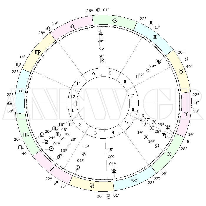| | ΘΕΣΕΙΣ ΠΛΑΝΗΤΩΝ ΑΣΤΡΟΛΟΓΙΚΟΥ ΧΑΡΤΗ ΤΗΣ ΣΤΙΓΜΗΣ ΑΥΤΗΣ | | | | Πλανήτης | Ζώδιο | Μοίρες | Δεκαήμ. | Σε οίκο | Απόκλιση | | Ακμές των οίκων | | Ηλιος | Τοξότης | 00°58' | Πρώτο | 2 | 20 S 21 | | 1ος | 04°15' | Ζυγός | | Σελήνη | Αιγόκερως | 00°52' | Πρώτο | 3 | 28 S 14 | | 2ος | 01°08' | Σκορπιός | | Ερμής | Σκορπιός | 24°53'R | Τρίτο | 2 | 17 S 39 | | 3ος | 01°44' | Τοξότης | | Αφροδίτη | Σκορπιός | 20°11' | Τρίτο | 2 | 16 S 51 | | 4ος | 04°47' | Αιγόκερως | | Αρης | Τοξότης | 13°25' | Δεύτερο | 3 | 23 S 00 | | 5ος | 07°43' | Υδροχόος | | Δίας | Καρκίνος | 24°56'R | Τρίτο | 10 | 21 N 16 | | 6ος | 07°59' | Ιχθείς | | Κρόνος | Ιχθείς | 25°18'R | Τρίτο | 6 | 04 S 04 | | 7ος | 04°15' | Κριός | | Ουρανός | Ταύρος | 29°23'R | Τρίτο | 8 | 19 N 49 | | 8ος | 01°08' | Ταύρος | | Ποσειδώνας | Ιχθείς | 29°27'R | Τρίτο | 6 | 01 S 28 | | 9ος | 01°44' | Δίδυμοι | | Πλούτωνας | Υδροχόος | 01°45' | Πρώτο | 4 | 23 S 26 | | 10ος | 04°47' | Καρκίνος | | Β. Δεσμός | Ιχθείς | 14°14' | Δεύτερο | 6 | 06 S 12 | | 11ος | 07°43' | Λέων | | Ωροσκόπος | Ζυγός | 04°15' | Πρώτο | | | 12ος | 07°59' | Παρθένος | | Μεσουράνημα | Καρκίνος | 04°47' | Πρώτο | | | |