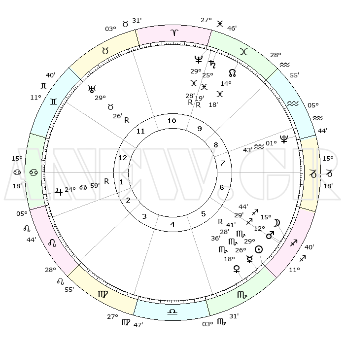 | | ΘΕΣΕΙΣ ΠΛΑΝΗΤΩΝ ΑΣΤΡΟΛΟΓΙΚΟΥ ΧΑΡΤΗ ΤΗΣ ΣΤΙΓΜΗΣ ΑΥΤΗΣ | | | | Πλανήτης | Ζώδιο | Μοίρες | Δεκαήμ. | Σε οίκο | Απόκλιση | | Ακμές των οίκων | | Ηλιος | Σκορπιός | 29°06' | Τρίτο | 1 | 19 S 57 | | 1ος | 15°27' | Σκορπιός | | Σελήνη | Τοξότης | 08°45' | Πρώτο | 1 | 26 S 40 | | 2ος | 14°58' | Τοξότης | | Ερμής | Σκορπιός | 27°15'R | Τρίτο | 1 | 18 S 45 | | 3ος | 18°30' | Αιγόκερως | | Αφροδίτη | Σκορπιός | 17°51' | Δεύτερο | 1 | 16 S 09 | | 4ος | 23°49' | Υδροχόος | | Αρης | Τοξότης | 12°04' | Δεύτερο | 1 | 22 S 48 | | 5ος | 26°12' | Ιχθείς | | Δίας | Καρκίνος | 25°00'R | Τρίτο | 9 | 21 N 15 | | 6ος | 23°11' | Κριός | | Κρόνος | Ιχθείς | 25°20'R | Τρίτο | 4 | 04 S 04 | | 7ος | 15°27' | Ταύρος | | Ουρανός | Ταύρος | 29°27'R | Τρίτο | 7 | 19 N 50 | | 8ος | 14°58' | Δίδυμοι | | Ποσειδώνας | Ιχθείς | 29°29'R | Τρίτο | 5 | 01 S 27 | | 9ος | 18°30' | Καρκίνος | | Πλούτωνας | Υδροχόος | 01°43' | Πρώτο | 3 | 23 S 27 | | 10ος | 23°49' | Λέων | | Β. Δεσμός | Ιχθείς | 14°20' | Δεύτερο | 4 | 06 S 10 | | 11ος | 26°12' | Παρθένος | | Ωροσκόπος | Σκορπιός | 15°27' | Δεύτερο | | | 12ος | 23°11' | Ζυγός | | Μεσουράνημα | Λέων | 23°49' | Τρίτο | | | |