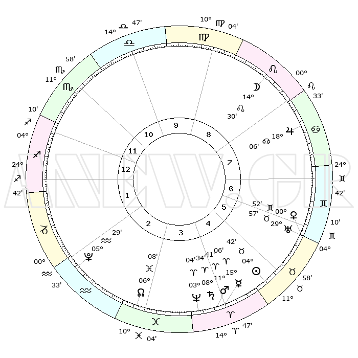 | | ΘΕΣΕΙΣ ΠΛΑΝΗΤΩΝ ΑΣΤΡΟΛΟΓΙΚΟΥ ΧΑΡΤΗ ΤΗΣ ΣΤΙΓΜΗΣ ΑΥΤΗΣ | | | | Πλανήτης | Ζώδιο | Μοίρες | Δεκαήμ. | Σε οίκο | Απόκλιση | | Ακμές των οίκων | | Ηλιος | Ταύρος | 03°34' | Πρώτο | 6 | 12 N 42 | | 1ος | 03°53' | Σκορπιός | | Σελήνη | Καρκίνος | 28°30' | Τρίτο | 9 | 23 N 36 | | 2ος | 02°32' | Τοξότης | | Ερμής | Κριός | 13°09' | Δεύτερο | 6 | 02 N 53 | | 3ος | 04°49' | Αιγόκερως | | Αφροδίτη | Ταύρος | 29°27' | Τρίτο | 7 | 20 N 35 | | 4ος | 09°17' | Υδροχόος | | Αρης | Κριός | 10°47' | Δεύτερο | 6 | 03 N 24 | | 5ος | 12°08' | Ιχθείς | | Δίας | Καρκίνος | 17°57' | Δεύτερο | 9 | 22 N 37 | | 6ος | 10°26' | Κριός | | Κρόνος | Κριός | 08°25' | Πρώτο | 5 | 01 N 21 | | 7ος | 03°53' | Ταύρος | | Ουρανός | Ταύρος | 29°53' | Τρίτο | 7 | 19 N 57 | | 8ος | 02°32' | Δίδυμοι | | Ποσειδώνας | Κριός | 03°02' | Πρώτο | 5 | 00 S 00 | | 9ος | 04°49' | Καρκίνος | | Πλούτωνας | Υδροχόος | 05°28' | Πρώτο | 3 | 22 S 48 | | 10ος | 09°17' | Λέων | | Β. Δεσμός | Ιχθείς | 06°12' | Πρώτο | 4 | 09 S 14 | | 11ος | 12°08' | Παρθένος | | Ωροσκόπος | Σκορπιός | 03°53' | Πρώτο | | | 12ος | 10°26' | Ζυγός | | Μεσουράνημα | Λέων | 09°17' | Πρώτο | | | |