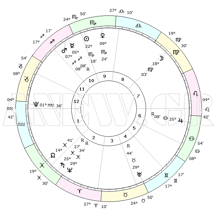 | | ΘΕΣΕΙΣ ΠΛΑΝΗΤΩΝ ΑΣΤΡΟΛΟΓΙΚΟΥ ΧΑΡΤΗ ΤΗΣ ΣΤΙΓΜΗΣ ΑΥΤΗΣ | | | | Πλανήτης | Ζώδιο | Μοίρες | Δεκαήμ. | Σε οίκο | Απόκλιση | | Ακμές των οίκων | | Ηλιος | Σκορπιός | 22°14' | Τρίτο | 10 | 18 S 19 | | 1ος | 06°45' | Αιγόκερως | | Σελήνη | Παρθένος | 17°10' | Δεύτερο | 8 | 04 N 59 | | 2ος | 15°37' | Υδροχόος | | Ερμής | Τοξότης | 05°12'R | Πρώτο | 11 | 22 S 32 | | 3ος | 25°55' | Ιχθείς | | Αφροδίτη | Σκορπιός | 09°18' | Πρώτο | 10 | 13 S 26 | | 4ος | 28°42' | Κριός | | Αρης | Τοξότης | 07°05' | Πρώτο | 11 | 22 S 00 | | 5ος | 23°59' | Ταύρος | | Δίας | Καρκίνος | 25°08'R | Τρίτο | 7 | 21 N 13 | | 6ος | 15°26' | Δίδυμοι | | Κρόνος | Ιχθείς | 25°27'R | Τρίτο | 2 | 04 S 02 | | 7ος | 06°45' | Καρκίνος | | Ουρανός | Ταύρος | 29°44'R | Τρίτο | 5 | 19 N 53 | | 8ος | 15°37' | Λέων | | Ποσειδώνας | Ιχθείς | 29°34'R | Τρίτο | 3 | 01 S 26 | | 9ος | 25°55' | Παρθένος | | Πλούτωνας | Υδροχόος | 01°36' | Πρώτο | 1 | 23 S 28 | | 10ος | 28°42' | Ζυγός | | Β. Δεσμός | Ιχθείς | 14°42' | Δεύτερο | 2 | 06 S 02 | | 11ος | 23°59' | Σκορπιός | | Ωροσκόπος | Αιγόκερως | 06°45' | Πρώτο | | | 12ος | 15°26' | Τοξότης | | Μεσουράνημα | Ζυγός | 28°42' | Τρίτο | | | |