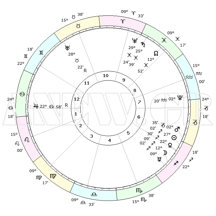 | | ΘΕΣΕΙΣ ΠΛΑΝΗΤΩΝ ΑΣΤΡΟΛΟΓΙΚΟΥ ΧΑΡΤΗ ΤΗΣ ΣΤΙΓΜΗΣ ΑΥΤΗΣ | | | | Πλανήτης | Ζώδιο | Μοίρες | Δεκαήμ. | Σε οίκο | Απόκλιση | | Ακμές των οίκων | | Ηλιος | Τοξότης | 26°35' | Τρίτο | 12 | 23 S 23 | | 1ος | 08°37' | Αιγόκερως | | Σελήνη | Τοξότης | 06°52' | Πρώτο | 11 | 26 S 21 | | 2ος | 17°58' | Υδροχόος | | Ερμής | Τοξότης | 08°25' | Πρώτο | 11 | 20 S 36 | | 3ος | 28°16' | Ιχθείς | | Αφροδίτη | Τοξότης | 21°56' | Τρίτο | 12 | 23 S 09 | | 4ος | 00°43' | Ταύρος | | Αρης | Αιγόκερως | 02°15' | Πρώτο | 12 | 24 S 13 | | 5ος | 25°44' | Ταύρος | | Δίας | Καρκίνος | 23°01'R | Τρίτο | 7 | 21 N 40 | | 6ος | 17°07' | Δίδυμοι | | Κρόνος | Ιχθείς | 25°38' | Τρίτο | 2 | 03 S 51 | | 7ος | 08°37' | Καρκίνος | | Ουρανός | Ταύρος | 28°23'R | Τρίτο | 5 | 19 N 36 | | 8ος | 17°58' | Λέων | | Ποσειδώνας | Ιχθείς | 29°23' | Τρίτο | 3 | 01 S 28 | | 9ος | 28°16' | Παρθένος | | Πλούτωνας | Υδροχόος | 02°20' | Πρώτο | 1 | 23 S 18 | | 10ος | 00°43' | Σκορπιός | | Β. Δεσμός | Ιχθείς | 12°54' | Δεύτερο | 2 | 06 S 43 | | 11ος | 25°44' | Σκορπιός | | Ωροσκόπος | Αιγόκερως | 08°37' | Πρώτο | | | 12ος | 17°07' | Τοξότης | | Μεσουράνημα | Σκορπιός | 00°43' | Πρώτο | | | |
