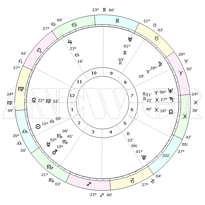 | ΘΕΣΕΙΣ ΠΛΑΝΗΤΩΝ ΑΣΤΡΟΛΟΓΙΚΟΥ ΧΑΡΤΗ ΤΗΣ ΣΤΙΓΜΗΣ ΑΥΤΗΣ | | Πλανήτης | Ζώδιο | Μοίρες | Δεκαήμ. | Σε οίκο | Απόκλιση | | Ακμές των οίκων | Ηλιος | Ζυγός | 14°60' | Δεύτερο | 2 | 05 S 54 | | 1ος | 26°47' | Λέων | Σελήνη | Κριός | 27°04' | Τρίτο | 9 | 13 N 29 | | 2ος | 20°18' | Παρθένος | Ερμής | Σκορπιός | 02°00' | Πρώτο | 3 | 13 S 03 | | 3ος | 18°40' | Ζυγός | Αφροδίτη | Παρθένος | 22°45' | Τρίτο | 2 | 04 N 11 | | 4ος | 21°32' | Σκορπιός | Αρης | Σκορπιός | 10°41' | Δεύτερο | 3 | 15 S 10 | | 5ος | 25°57' | Τοξότης | Δίας | Καρκίνος | 23°16' | Τρίτο | 11 | 21 N 28 | | 6ος | 28°11' | Αιγόκερως | Κρόνος | Ιχθείς | 27°22'R | Τρίτο | 8 | 03 S 21 | | 7ος | 26°47' | Υδροχόος | Ουρανός | Δίδυμοι | 01°03'R | Πρώτο | 10 | 20 N 09 | | 8ος | 20°18' | Ιχθείς | Ποσειδώνας | Κριός | 00°21'R | Πρώτο | 8 | 01 S 07 | | 9ος | 18°40' | Κριός | Πλούτωνας | Υδροχόος | 01°22'R | Πρώτο | 6 | 23 S 32 | | 10ος | 21°32' | Ταύρος | Β. Δεσμός | Ιχθείς | 16°40' | Δεύτερο | 7 | 05 S 16 | | 11ος | 25°57' | Δίδυμοι | Ωροσκόπος | Λέων | 26°47' | Τρίτο | | | 12ος | 28°11' | Καρκίνος | Μεσουράνημα | Ταύρος | 21°32' | Τρίτο | | | |