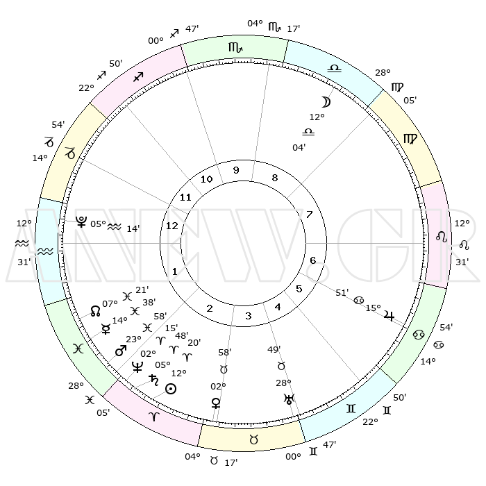 | | ΘΕΣΕΙΣ ΠΛΑΝΗΤΩΝ ΑΣΤΡΟΛΟΓΙΚΟΥ ΧΑΡΤΗ ΤΗΣ ΣΤΙΓΜΗΣ ΑΥΤΗΣ | | | | Πλανήτης | Ζώδιο | Μοίρες | Δεκαήμ. | Σε οίκο | Απόκλιση | | Ακμές των οίκων | | Ηλιος | Κριός | 12°17' | Δεύτερο | 3 | 04 N 51 | | 1ος | 16°41' | Αιγόκερως | | Σελήνη | Ζυγός | 11°17' | Δεύτερο | 9 | 07 S 02 | | 2ος | 28°03' | Υδροχόος | | Ερμής | Ιχθείς | 14°35' | Δεύτερο | 2 | 07 S 25 | | 3ος | 08°03' | Κριός | | Αφροδίτη | Ταύρος | 02°53' | Πρώτο | 3 | 12 N 06 | | 4ος | 08°58' | Ταύρος | | Αρης | Ιχθείς | 23°55' | Τρίτο | 2 | 03 S 22 | | 5ος | 02°58' | Δίδυμοι | | Δίας | Καρκίνος | 15°51' | Δεύτερο | 6 | 22 N 52 | | 6ος | 24°11' | Δίδυμοι | | Κρόνος | Κριός | 05°47' | Πρώτο | 2 | 00 N 21 | | 7ος | 16°41' | Καρκίνος | | Ουρανός | Ταύρος | 28°48' | Τρίτο | 4 | 19 N 43 | | 8ος | 28°03' | Λέων | | Ποσειδώνας | Κριός | 02°15' | Πρώτο | 2 | 00 S 18 | | 9ος | 08°03' | Ζυγός | | Πλούτωνας | Υδροχόος | 05°14' | Πρώτο | 1 | 22 S 47 | | 10ος | 08°58' | Σκορπιός | | Β. Δεσμός | Ιχθείς | 07°21' | Πρώτο | 2 | 08 S 49 | | 11ος | 02°58' | Τοξότης | | Ωροσκόπος | Αιγόκερως | 16°41' | Δεύτερο | | | 12ος | 24°11' | Τοξότης | | Μεσουράνημα | Σκορπιός | 08°58' | Πρώτο | | | |