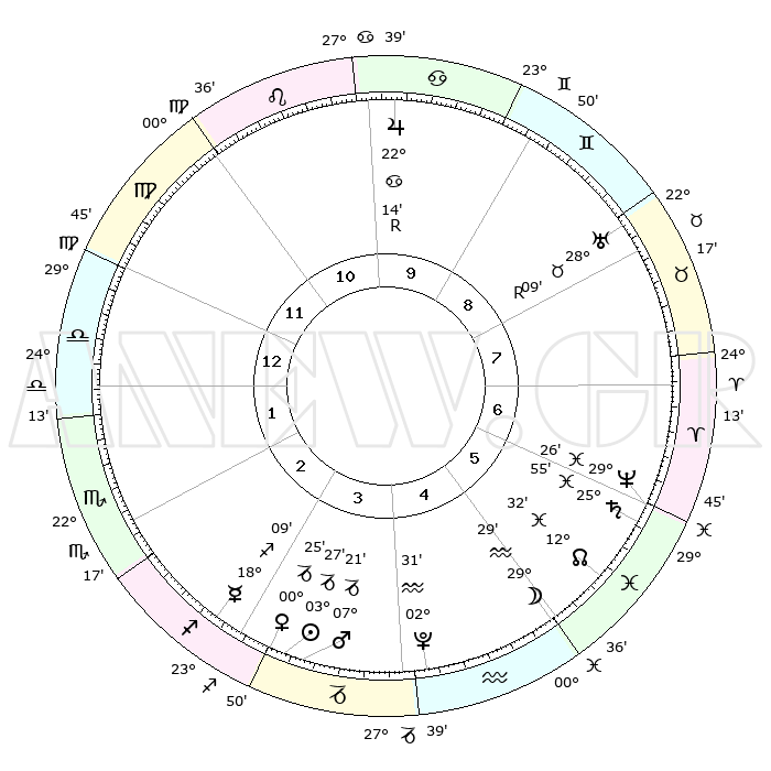 | | ΘΕΣΕΙΣ ΠΛΑΝΗΤΩΝ ΑΣΤΡΟΛΟΓΙΚΟΥ ΧΑΡΤΗ ΤΗΣ ΣΤΙΓΜΗΣ ΑΥΤΗΣ | | | | Πλανήτης | Ζώδιο | Μοίρες | Δεκαήμ. | Σε οίκο | Απόκλιση | | Ακμές των οίκων | | Ηλιος | Αιγόκερως | 02°27' | Πρώτο | 3 | 23 S 25 | | 1ος | 28°41' | Ζυγός | | Σελήνη | Υδροχόος | 17°01' | Δεύτερο | 4 | 17 S 43 | | 2ος | 27°01' | Σκορπιός | | Ερμής | Τοξότης | 16°42' | Δεύτερο | 2 | 22 S 23 | | 3ος | 28°52' | Τοξότης | | Αφροδίτη | Τοξότης | 29°11' | Τρίτο | 3 | 23 S 38 | | 4ος | 02°58' | Υδροχόος | | Αρης | Αιγόκερως | 06°36' | Πρώτο | 3 | 24 S 06 | | 5ος | 05°54' | Ιχθείς | | Δίας | Καρκίνος | 22°21'R | Τρίτο | 9 | 21 N 48 | | 6ος | 04°41' | Κριός | | Κρόνος | Ιχθείς | 25°52' | Τρίτο | 5 | 03 S 44 | | 7ος | 28°41' | Κριός | | Ουρανός | Ταύρος | 28°11'R | Τρίτο | 8 | 19 N 33 | | 8ος | 27°01' | Ταύρος | | Ποσειδώνας | Ιχθείς | 29°26' | Τρίτο | 5 | 01 S 27 | | 9ος | 28°52' | Δίδυμοι | | Πλούτωνας | Υδροχόος | 02°29' | Πρώτο | 3 | 23 S 16 | | 10ος | 02°58' | Λέων | | Β. Δεσμός | Ιχθείς | 12°36' | Δεύτερο | 5 | 06 S 50 | | 11ος | 05°54' | Παρθένος | | Ωροσκόπος | Ζυγός | 28°41' | Τρίτο | | | 12ος | 04°41' | Ζυγός | | Μεσουράνημα | Λέων | 02°58' | Πρώτο | | | |