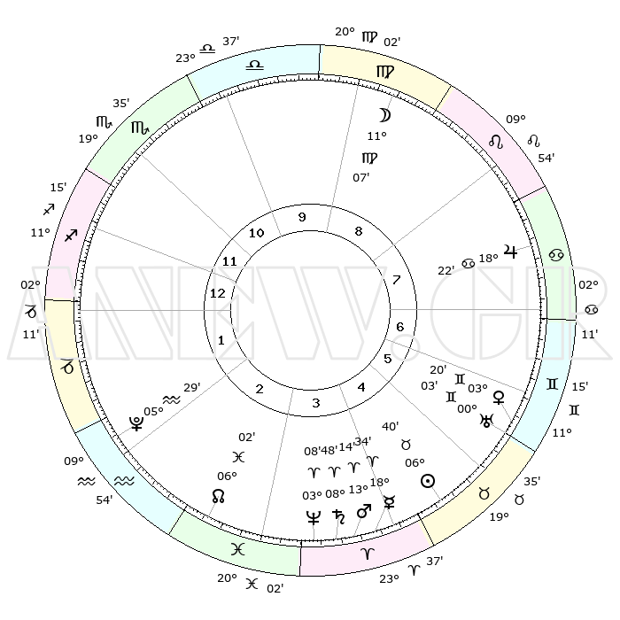 | | ΘΕΣΕΙΣ ΠΛΑΝΗΤΩΝ ΑΣΤΡΟΛΟΓΙΚΟΥ ΧΑΡΤΗ ΤΗΣ ΣΤΙΓΜΗΣ ΑΥΤΗΣ | | | | Πλανήτης | Ζώδιο | Μοίρες | Δεκαήμ. | Σε οίκο | Απόκλιση | | Ακμές των οίκων | | Ηλιος | Ταύρος | 06°37' | Πρώτο | 5 | 13 N 43 | | 1ος | 16°37' | Τοξότης | | Σελήνη | Παρθένος | 10°29' | Δεύτερο | 9 | 07 N 22 | | 2ος | 20°39' | Αιγόκερως | | Ερμής | Κριός | 18°29' | Δεύτερο | 4 | 05 N 07 | | 3ος | 29°06' | Υδροχόος | | Αφροδίτη | Δίδυμοι | 03°16' | Πρώτο | 6 | 21 N 30 | | 4ος | 04°42' | Κριός | | Αρης | Κριός | 13°12' | Δεύτερο | 4 | 04 N 22 | | 5ος | 03°14' | Ταύρος | | Δίας | Καρκίνος | 18°21' | Δεύτερο | 7 | 22 N 34 | | 6ος | 26°12' | Ταύρος | | Κρόνος | Κριός | 08°47' | Πρώτο | 4 | 01 N 30 | | 7ος | 16°37' | Δίδυμοι | | Ουρανός | Δίδυμοι | 00°03' | Πρώτο | 6 | 20 N 00 | | 8ος | 20°39' | Καρκίνος | | Ποσειδώνας | Κριός | 03°08' | Πρώτο | 3 | 00 N 02 | | 9ος | 29°06' | Λέων | | Πλούτωνας | Υδροχόος | 05°29' | Πρώτο | 2 | 22 S 48 | | 10ος | 04°42' | Ζυγός | | Β. Δεσμός | Ιχθείς | 06°02' | Πρώτο | 3 | 09 S 18 | | 11ος | 03°14' | Σκορπιός | | Ωροσκόπος | Τοξότης | 16°37' | Δεύτερο | | | 12ος | 26°12' | Σκορπιός | | Μεσουράνημα | Ζυγός | 04°42' | Πρώτο | | | |