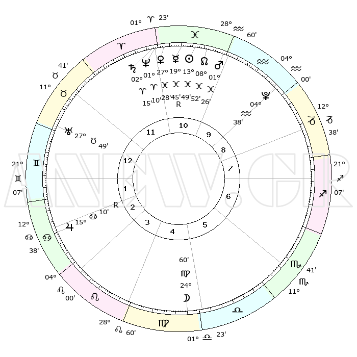 | | ΘΕΣΕΙΣ ΠΛΑΝΗΤΩΝ ΑΣΤΡΟΛΟΓΙΚΟΥ ΧΑΡΤΗ ΤΗΣ ΣΤΙΓΜΗΣ ΑΥΤΗΣ | | | | Πλανήτης | Ζώδιο | Μοίρες | Δεκαήμ. | Σε οίκο | Απόκλιση | | Ακμές των οίκων | | Ηλιος | Ιχθείς | 13°45' | Δεύτερο | 11 | 06 S 23 | | 1ος | 24°45' | Ταύρος | | Σελήνη | Παρθένος | 24°08' | Τρίτο | 5 | 01 N 04 | | 2ος | 20°40' | Δίδυμοι | | Ερμής | Ιχθείς | 19°49'R | Δεύτερο | 11 | 00 S 40 | | 3ος | 12°18' | Καρκίνος | | Αφροδίτη | Ιχθείς | 27°23' | Τρίτο | 11 | 02 S 14 | | 4ος | 04°43' | Λέων | | Αρης | Ιχθείς | 01°23' | Πρώτο | 10 | 12 S 00 | | 5ος | 02°19' | Παρθένος | | Δίας | Καρκίνος | 15°10'R | Δεύτερο | 3 | 22 N 55 | | 6ος | 09°53' | Ζυγός | | Κρόνος | Κριός | 02°14' | Πρώτο | 11 | 01 S 04 | | 7ος | 24°45' | Σκορπιός | | Ουρανός | Ταύρος | 27°49' | Τρίτο | 1 | 19 N 30 | | 8ος | 20°40' | Τοξότης | | Ποσειδώνας | Κριός | 01°10' | Πρώτο | 11 | 00 S 44 | | 9ος | 12°18' | Αιγόκερως | | Πλούτωνας | Υδροχόος | 04°38' | Πρώτο | 9 | 22 S 52 | | 10ος | 04°43' | Υδροχόος | | Β. Δεσμός | Ιχθείς | 08°52' | Πρώτο | 11 | 08 S 15 | | 11ος | 02°19' | Ιχθείς | | Ωροσκόπος | Ταύρος | 24°45' | Τρίτο | | | 12ος | 09°53' | Κριός | | Μεσουράνημα | Υδροχόος | 04°43' | Πρώτο | | | |