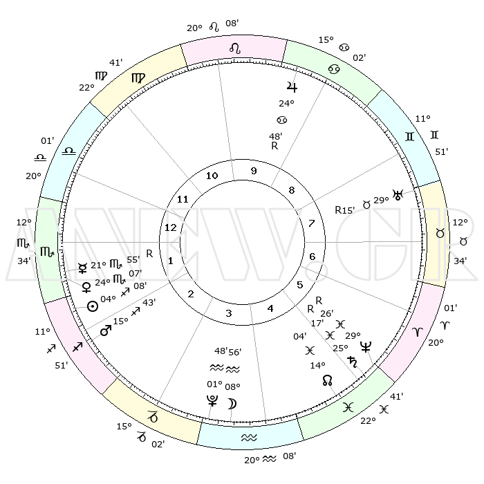 | | ΘΕΣΕΙΣ ΠΛΑΝΗΤΩΝ ΑΣΤΡΟΛΟΓΙΚΟΥ ΧΑΡΤΗ ΤΗΣ ΣΤΙΓΜΗΣ ΑΥΤΗΣ | | | | Πλανήτης | Ζώδιο | Μοίρες | Δεκαήμ. | Σε οίκο | Απόκλιση | | Ακμές των οίκων | | Ηλιος | Τοξότης | 04°07' | Πρώτο | 1 | 20 S 58 | | 1ος | 09°45' | Σκορπιός | | Σελήνη | Υδροχόος | 08°49' | Πρώτο | 3 | 20 S 53 | | 2ος | 08°49' | Τοξότης | | Ερμής | Σκορπιός | 21°55'R | Τρίτο | 1 | 16 S 12 | | 3ος | 11°41' | Αιγόκερως | | Αφροδίτη | Σκορπιός | 24°06' | Τρίτο | 1 | 17 S 57 | | 4ος | 16°34' | Υδροχόος | | Αρης | Τοξότης | 15°43' | Δεύτερο | 2 | 23 S 17 | | 5ος | 19°15' | Ιχθείς | | Δίας | Καρκίνος | 24°48'R | Τρίτο | 9 | 21 N 18 | | 6ος | 16°55' | Κριός | | Κρόνος | Ιχθείς | 25°17'R | Τρίτο | 5 | 04 S 04 | | 7ος | 09°45' | Ταύρος | | Ουρανός | Ταύρος | 29°15'R | Τρίτο | 7 | 19 N 47 | | 8ος | 08°49' | Δίδυμοι | | Ποσειδώνας | Ιχθείς | 29°26'R | Τρίτο | 5 | 01 S 28 | | 9ος | 11°41' | Καρκίνος | | Πλούτωνας | Υδροχόος | 01°48' | Πρώτο | 3 | 23 S 25 | | 10ος | 16°34' | Λέων | | Β. Δεσμός | Ιχθείς | 14°04' | Δεύτερο | 4 | 06 S 16 | | 11ος | 19°15' | Παρθένος | | Ωροσκόπος | Σκορπιός | 09°45' | Πρώτο | | | 12ος | 16°55' | Ζυγός | | Μεσουράνημα | Λέων | 16°34' | Δεύτερο | | | |
